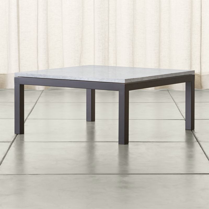 Parsons White Marble Top/ Stainless Steel Base 36x36 ... from images.crateandbarrel.com If you have a material of choice, look through a wide range of tables in different materials like marble, glass, wood, and metal. Pomona 27 metal and reclaimed wood square coffee table. Only 1 available and it's in 2 people's carts. 36 x 17 rustic live edge wood + steel bench / narrow coffee table. Price ($) any price under $250 $250 to $750 $750 to $1,500. * clean lines with mixed materials for rustic industrial style * coffee table: Rated 5 out of 5 stars. Darcus solid wood coffee table.